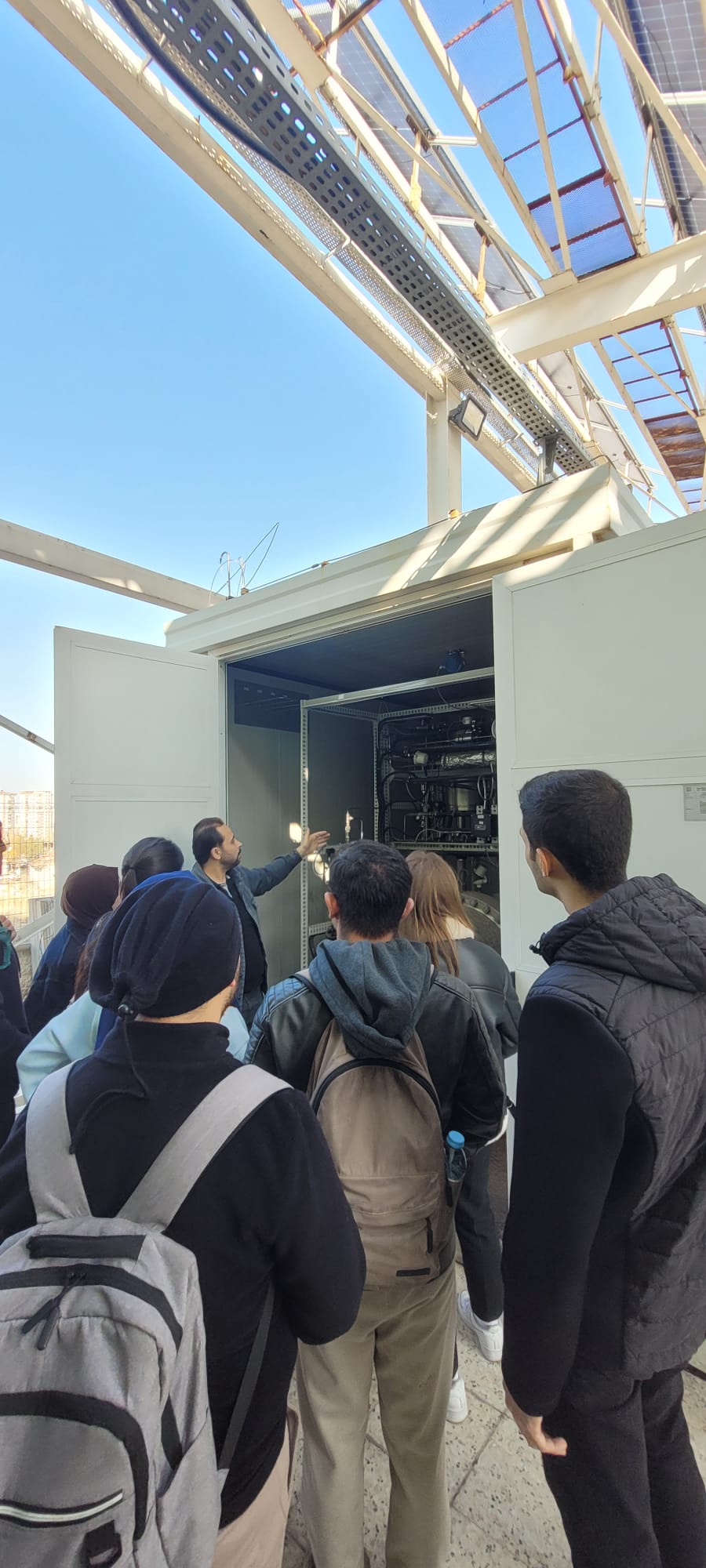 Erciyes Üniversitesi Fen Fakültesi Fizik Bölümü öğrencileri, 17 Kasım 2025 tarihinde Enerji Dönüşümleri Araştırma ve Uygulama Merkezi’ne (ERDÖM) teknik bir gezi gerçekleştirmiştir. Teknik gezi kapsamında öğrenciler, merkezde bulunan yakıt pili, elektrolizör, güneş enerjisi sistemi (GES) ve rüzgâr türbini teknolojilerini yerinde inceleme fırsatı bulmuştur. Merkez Müdür Yardımcımız Doç. Dr. Osman Kahveci gezi boyunca öğrencilere rehberlik ederek sistemlerin çalışma prensipleri, enerji dönüşüm süreçleri ve sürdürülebilir teknolojilerin uygulama alanları hakkında kapsamlı bilgiler aktarmıştır. Bu etkinlikle öğrencilerin yenilenebilir enerji teknolojilerine yönelik farkındalığın artması ve teorik bilgilerini pratik uygulamalarla pekiştirmelerine katkı sağlanması amaçlanmıştır.